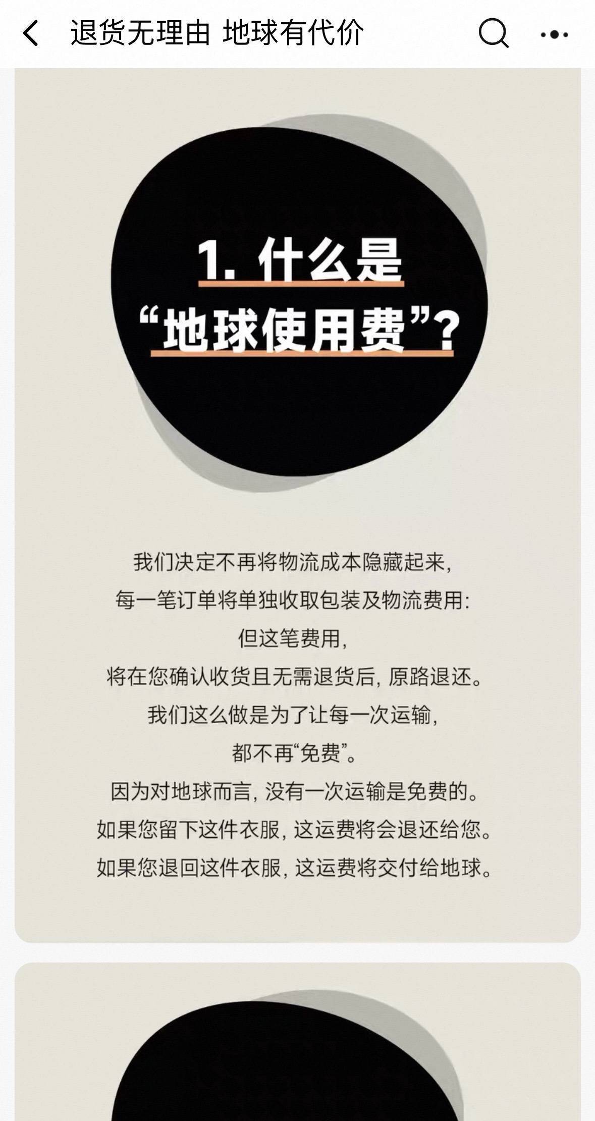 至于运费去向,店铺称所有未被退还的快递费用,将全额捐赠给SEE基金会的“1%地球税”环保公益项目,用于修复山林、清理河流等环保行动。店铺还表示,这不是惩罚,而是一次邀请,消费者在点击购买和退货之前都请三思,共同为减少网购对环境的影响而行动。