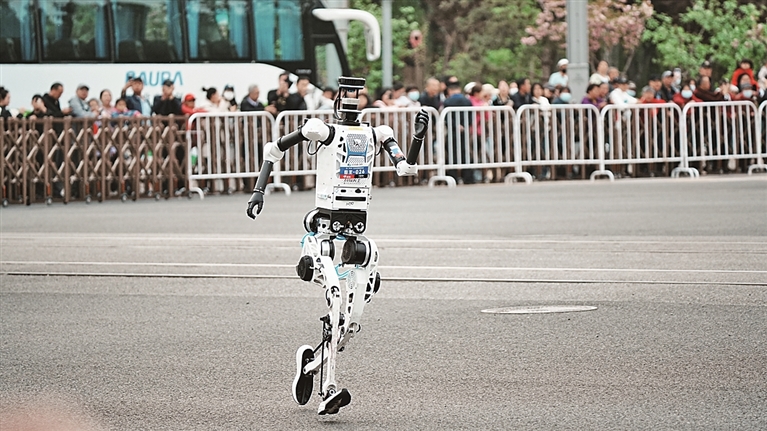 4月19日,人形机器人选手在比赛中。光明日报记者 王清彬摄/光明图片