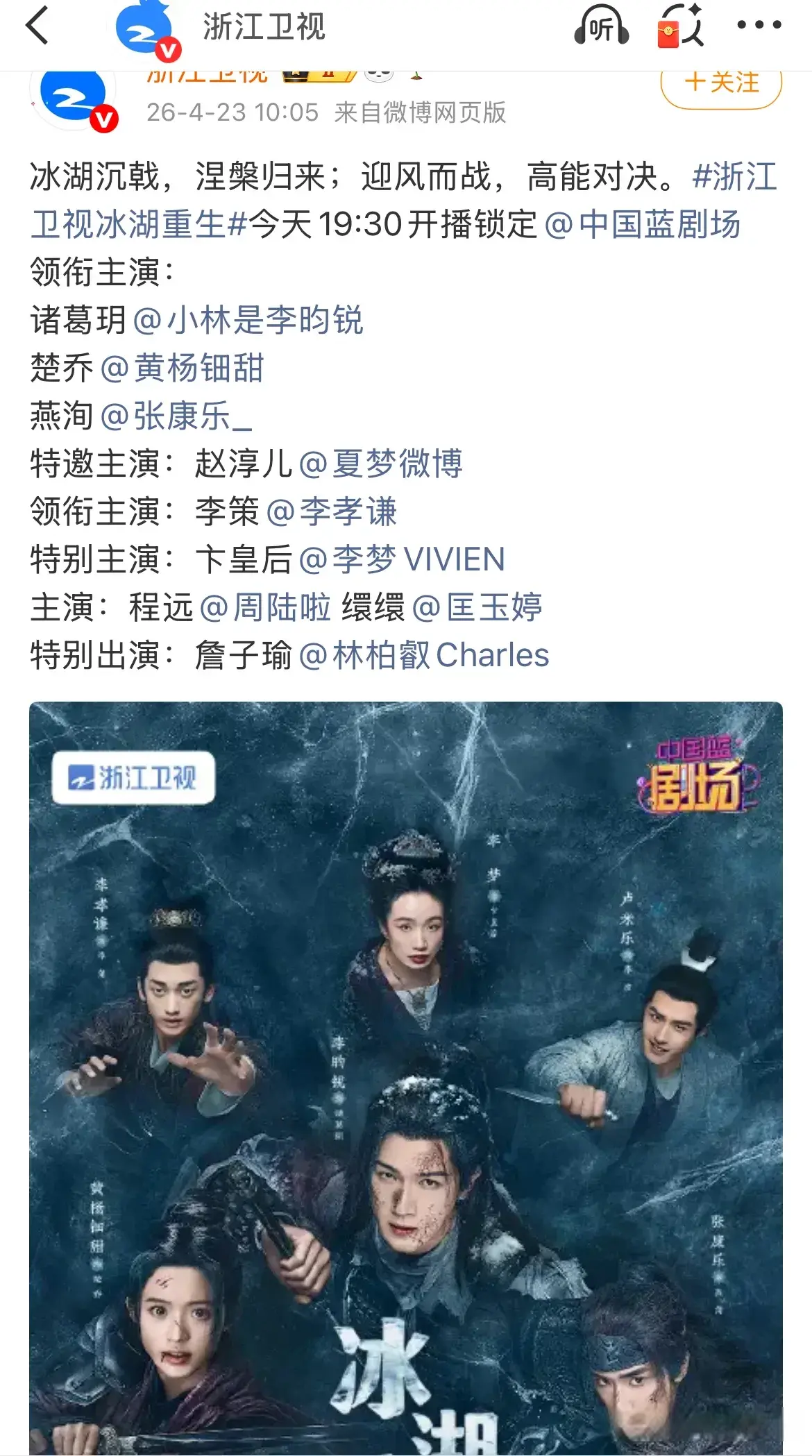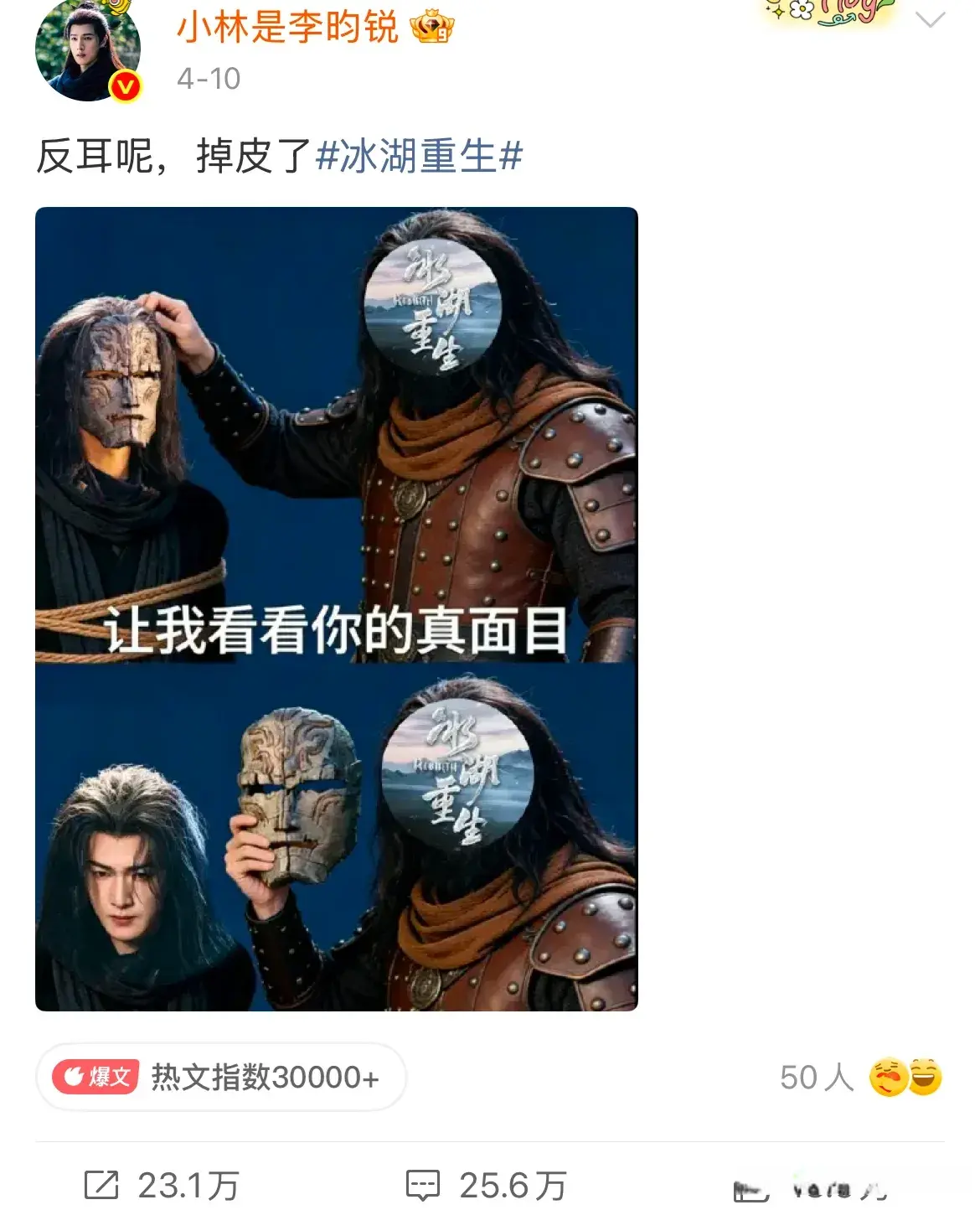 而这部剧最冤的受害者,就是一番男主李昀锐。身为领衔主演,他戏份少得可怜,完全是挂名男主,却要替整部烂剧背锅,糟糕的收视、口碑实绩全算在他头上,演艺事业无端受牵连。如今李昀锐彻底摆烂放弃剧宣,社交平台相关动态停留在4月10日,全程零互动避嫌。照这个口碑崩盘速度,《冰湖重生》的评分还会一路下跌,烂剧底线只会被它不断刷新。